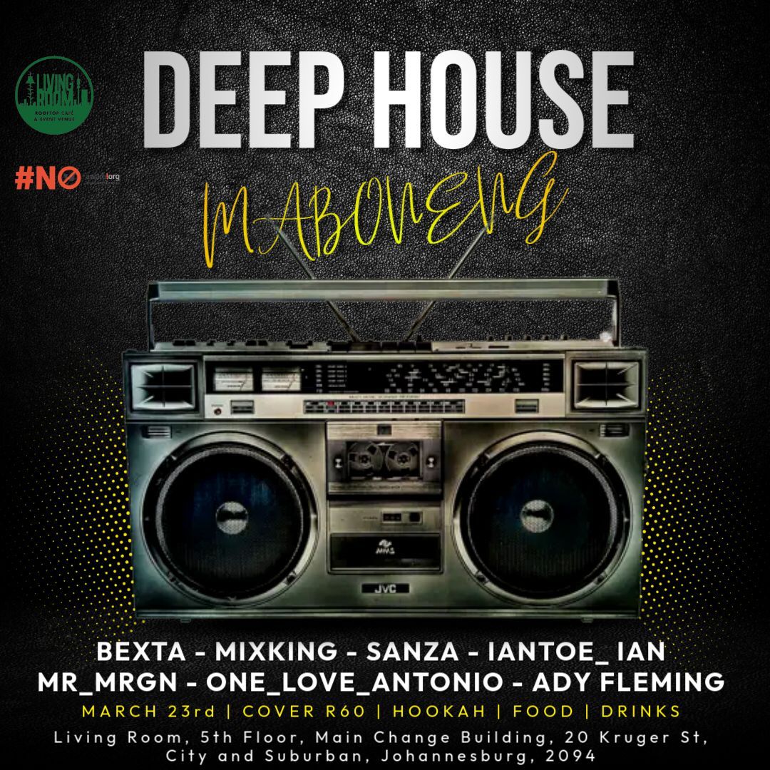 DEEPHOUSE MABONENG + Add to Google Calendar + iCal / Outlook export Date Mar 23 2025 Expired! Time 11:00 am - 10:00 pm Share this event